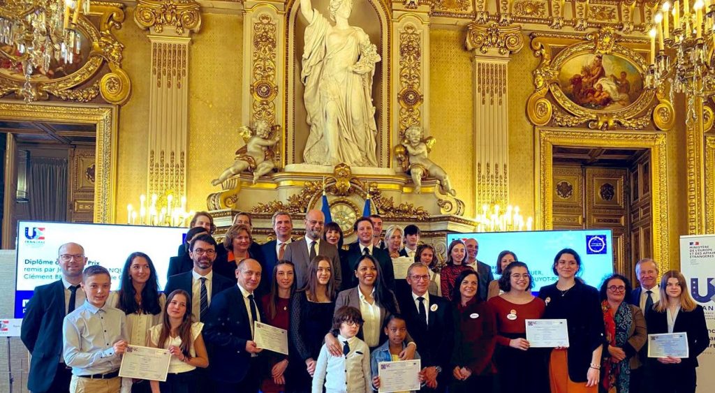 Martine Méheut Présidente fondatrice de Citoyennes pour l’Europe et Clément Beaune, secrétaire d'État chargé des Affaires européennes remettent le prix
