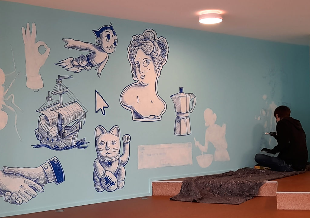 Grâce au "1% artistique dans les constructions publiques" une fresque a vu le jour sous le pinceau de Jean-Michel Ouvry dans la Maison des Lycéens. Les élèves ont participé à la genèse de l’œuvre.