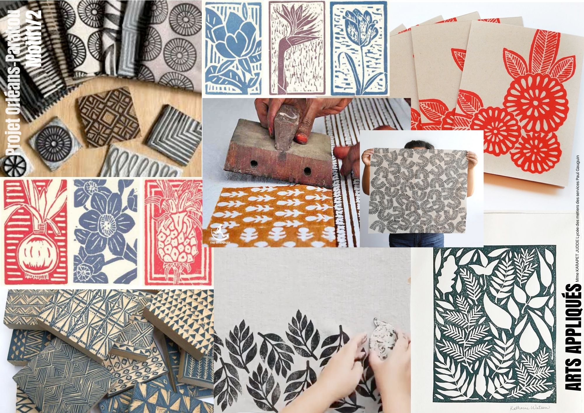 Mathias Leny est venu ensuite au lycée poursuivre l'initiation des élèves à la technique ancestrale du block print. Une fois les motifs finalisés, c'est lui qui les gravera avec minutie sur des tampons de bois avec lesquels il pourra imprimer les empreintes sur le tissu.