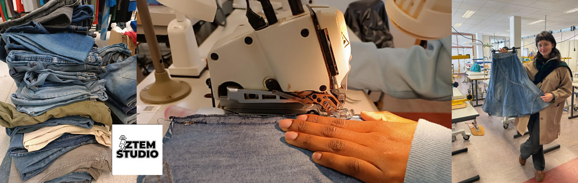 Ils ont confié à la classe une mission : participer à la confection de jupes pour la prochaine collection de ZTEM Studio. Les élèves disposaient de piles de jeans usagés, d'un patron et de quinze jours pour livrer le travail!!